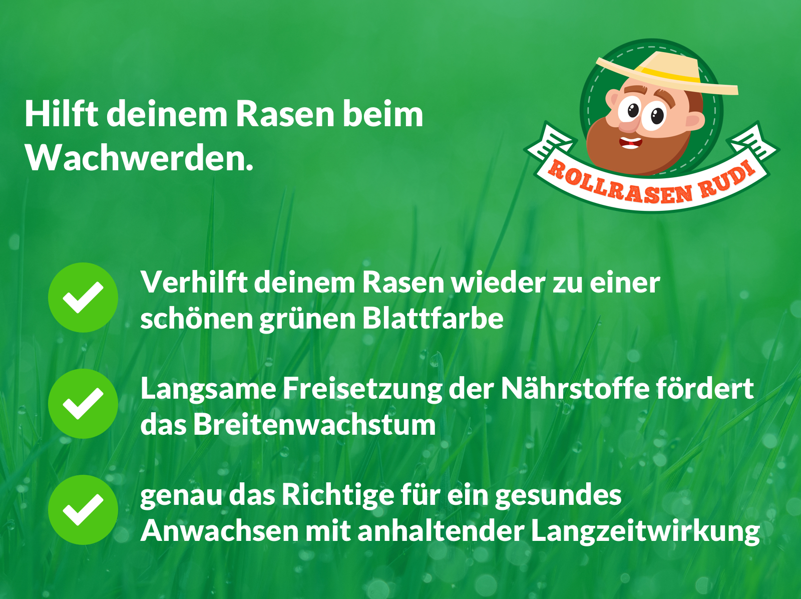 - Satte 20 % sparen mit Rudis „Rasendünger im Abo“: Hake das Thema Rasen düngen für ein ganzes Jahr ab und spare zusätzlich mindestens 20 % im Vergleich zu Einzelbestellungen.